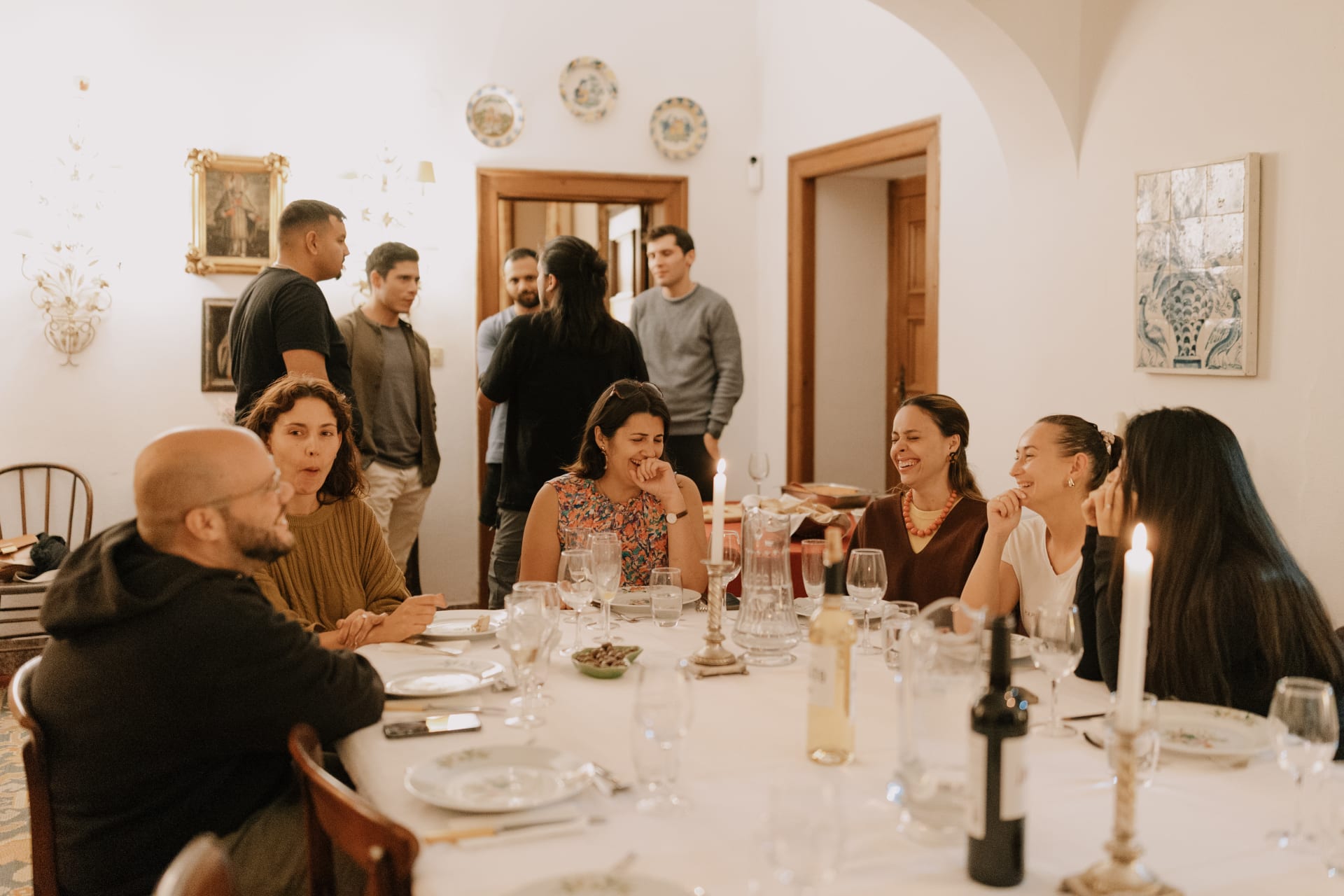 Once a year, we all meet for a week. A mix of work and vacation. All expenses on us.